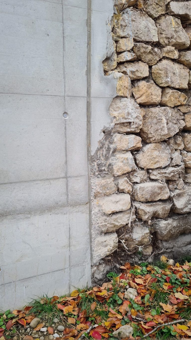| Im Spätjahr 2022 war ein Teil der bestehenden Bruchsteinstützmauer oberhalb der Angensteinstrasse eingestürzt. Da Gefahr im Verzug war, wurde diese Stützmauer raschstmöglich neu aufgestellt. Diese Realisierung wurde aufgrund der Gefährdung und der Beständigkeit anders als die bisherige Bruchsteinstützmauer in Beton ausgeführt, um weitere Einstürze zu verhindern.